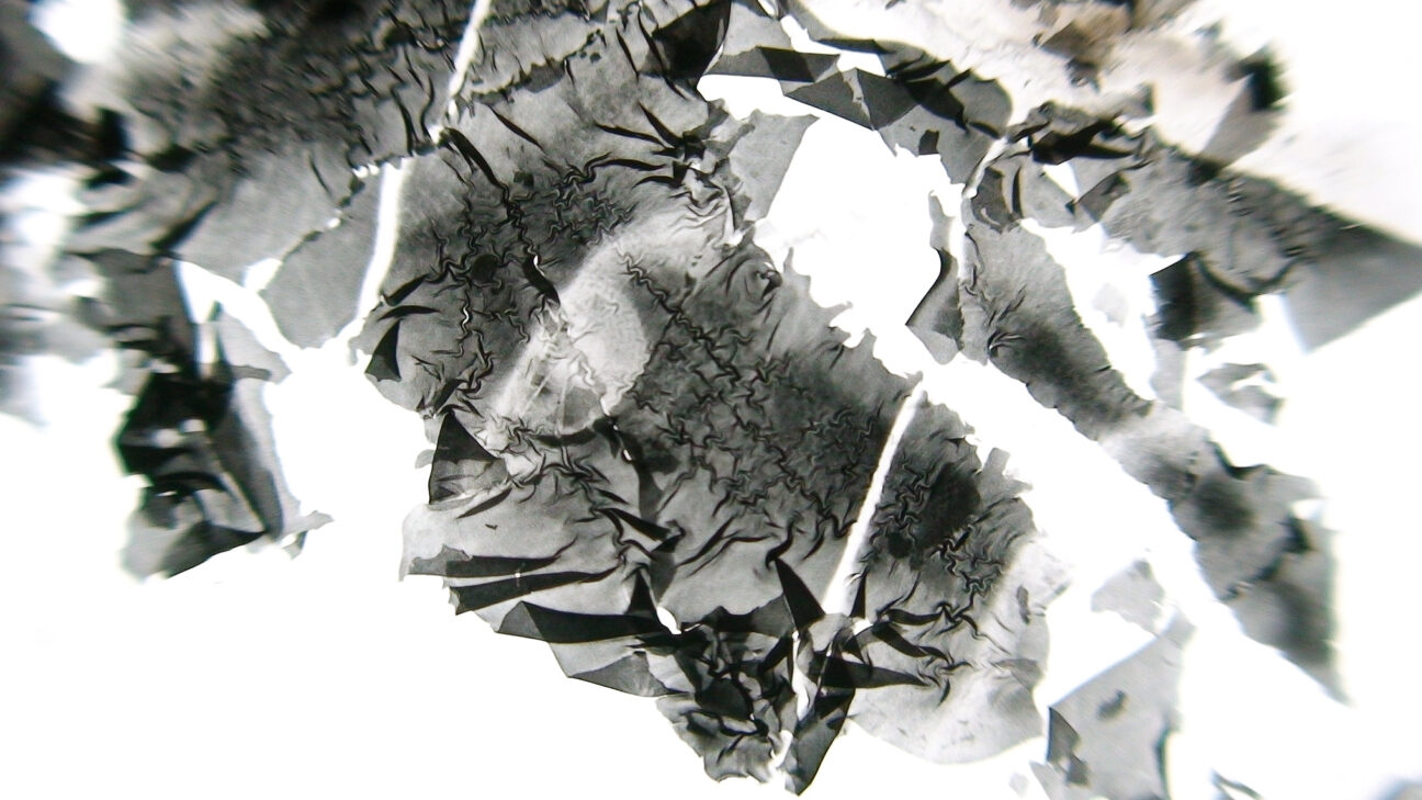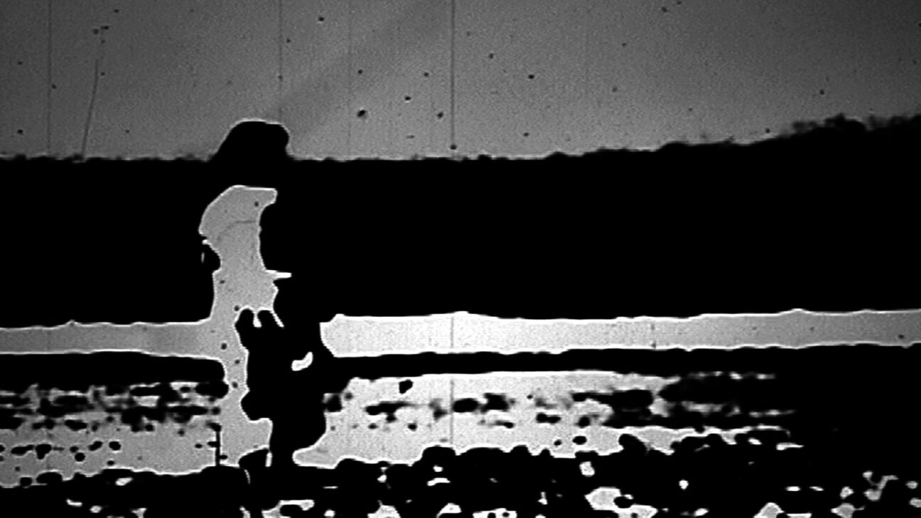 Hand-processed 16mm film, extremely rich in contrast, visualises solitary silence, a figure at sea, change and conception. -