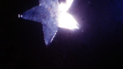 Approximates a small child’s fantasy world in the dark. In a series of close-ups, the nightlight is transformed into a meditative star-spangled sky. An improvisation, edited inside the camera and shot on a single reel. The stars swirl in silence.
