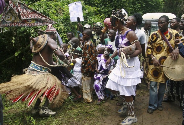 Tunde Kelani has by this time carved himself a unique position by creating a distinctive African cinema outside the Nollywood regime. Kelani melds a Yoruba world view, theatrical pageantry, social satire, epic theatre stylistics, byzantine plot turns, and disjunctive breaks into alternate styles. Here, he presents the story of a king of an imaginary town who brays against corruption while rigorously prosecuting economic reform and handily welcoming foreign investors: there’s no mistaking the parody of former President Obasanjo. The leadership portrait emerges as the key sub plot in a ornate romance featuring the Arugba – the virgin who carries the sacrificial calabash during the Osun Osogbo festival – and a young dancer intent on winning her. Set against the backdrop of a corrupt society seeking cleansing, rebirth and nationhood, with all the attendant intrigues, the Arugba must perform her annual traditional role of carrying the sacrifice in a procession to the river.