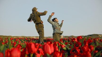 During the Second World War, the arrival of a group of hot-blooded Georgian soldiers forced to side with the Nazis, forms a welcome change in the life of the Texel girl Marie. She dreams of mountains, but suffers under the bigotry of the religiously conservative island inhabitants. While her family has already chosen a husband for her, she falls in love with the Georgian Goga. Ineke Smits combines the harsh reality of war with a layer of magic-realism. Marie’s dreams are augmented by the Georgian music and the Soviet musical The Aviatrix of Kazbek, a film within the film (with the leading role for the Romanian Anamaria Marinca, protagonist of Cristian Mungiu’s Golden Palm winning 4 Months, 3 Weeks and 2 Days) that the Georgians watch in secret. The screenplay by writer Arthur Japin (also has a minor role as a village elder) was inspired by the real billeting of Georgian soldiers on the island of Texel, all played by Georgian actors in the film.