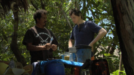 Julien, a young Frenchman, travels alone on foot and by boat through the overwhelming nature of Mexico. Nothing is said about his motives in this dreamy, meditative film. Nevertheless, there is no doubt about Julien’s state of mind: he is very tied up in himself. The coastal town of Chacahua serves as a refuge for a few days. When Julien is tired of sleeping in, he allows himself to be shown round the local sites by Pablo, a local fisherman. Relating to this patient, simple man helps Julien come to terms with himself . The French/Mexican director Matías Meyer studied for some time at the Sorbonne and then did a course at the Centro de Capacitación Cinematográfica in Mexico. The Cramp is Meyer’s second film, which is having its premiere in Rotterdam, after his debut Wadley (2008), on a young man’s peyote trip in the middle of the desert.