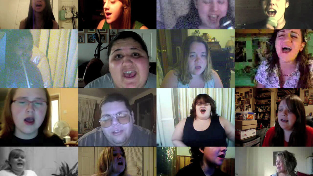 Unrecognisable and at some distance, the musicians of Blonde Redhead play in an enormous black void that is only filled by the music. -
