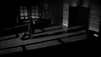 During a power failure, a well-groomed gentleman and a porter become acquainted in Hotel Novecento. They have a lot to say to each other, despite the social barrier that separates them. Stylised performance by two gentlemen, shot in elegant black-and-white. Screened before Amer.