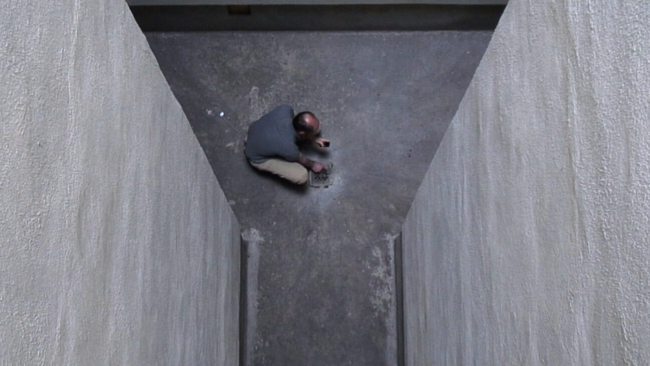 A plunge into the abyss: in one prolonged zoom, the drain in a courtyard comes ever closer. A spider scurries off to avoid our gaze. -