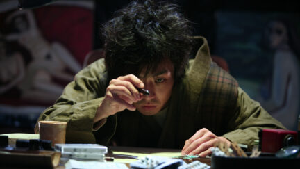 The film is based on the life of the manga comic-strip artist Abe Shinichi and above all his legendary album Miyoko Asagaya kibun (also the Japanese title of the film). Miyoko was the girlfriend, wife and, not lastly, the muse of the manga artist. Asagaya is the district of Tokyo where they lived back then. The district had a certain artistic reputation because a lot of writers lived there. The title represents the feeling of living in Asagaya with Miyoko. The manga story was very autobiographical and hence a logical basis for this unusual biopic. The life story starts in the 1970s. The young artist has no success at all and clings obsessively to his girlfriend and model. As model, Miyoko can only be described as an object of lust. The film is very licentious in the way she poses naked. So licentious that the film can be found on Web sites for pink pictures (typical Japanese narrative soft porn). Apart from an inventive and exuberant production design (in which manga delusions and reality are mixed), the power of the film can be traced back to the actors who play Abe Shinichi (Mizuhashi Kenji) and Miyoko (Machida Marie). Demanding roles, because the artist occasionally is intoxicated by delusions and alcohol and his muse has to reveal all. Right at the end of the film, during the titles, the real Abe appears briefly on the screen.