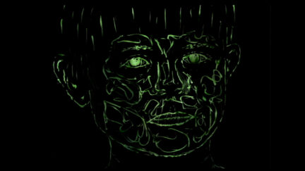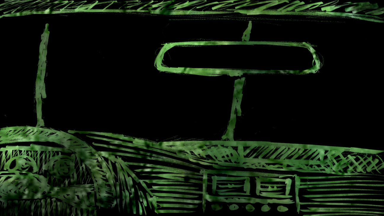 The maker’s traumatic childhood experience subtly recreated using captivating light-animated drawings. Ochsner’s mind conjures up images of the fatal car accident (in which his father died) as flashes of light and afterimages. Strong debut by young maker who, among other things, used his own childhood drawings: ‘All the things I could see and hear that night are reconstructed with simple drawings and sounds’.