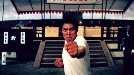 A 1970s kungfu movie packed full of eye-gouging, skull-cracking fight scenes. More violent than traditional wuxia films, kungfu films rapidly overtook these in the martial arts film market. King Boxer, a copy of the Hong Kong box-office smash The Bravest Revenge, went on to take the American and European markets by storm. The film sees traditional Chinese kungfu techniques exaggerated beyond the realms of human capability, creating scenes combining shocking violence with stunning feats of acrobatics. Each time the main character Chi Hao (Lo Lieh) uses his ‘iron fist power’, his hands glow red and the Ironsidetheme music starts to play – a tune so distinctive and atmospheric it came to be an integral part of the film’s overall success.