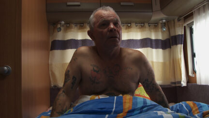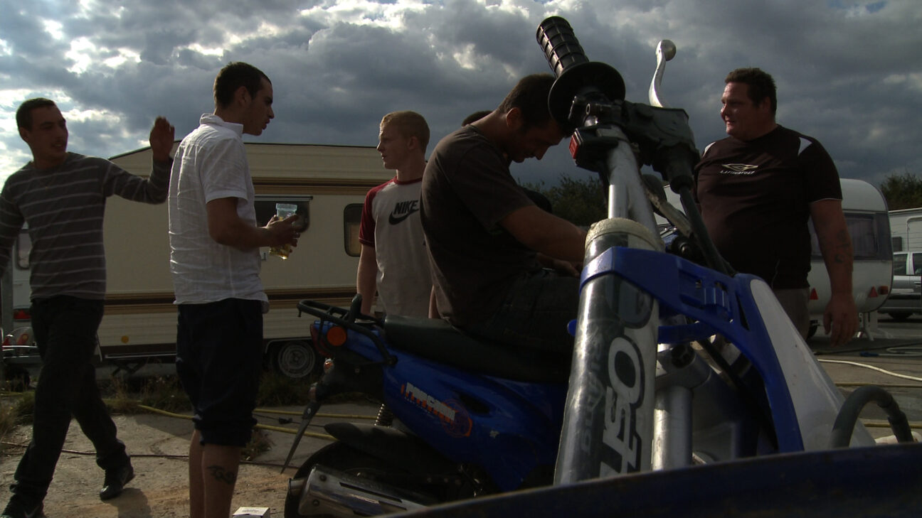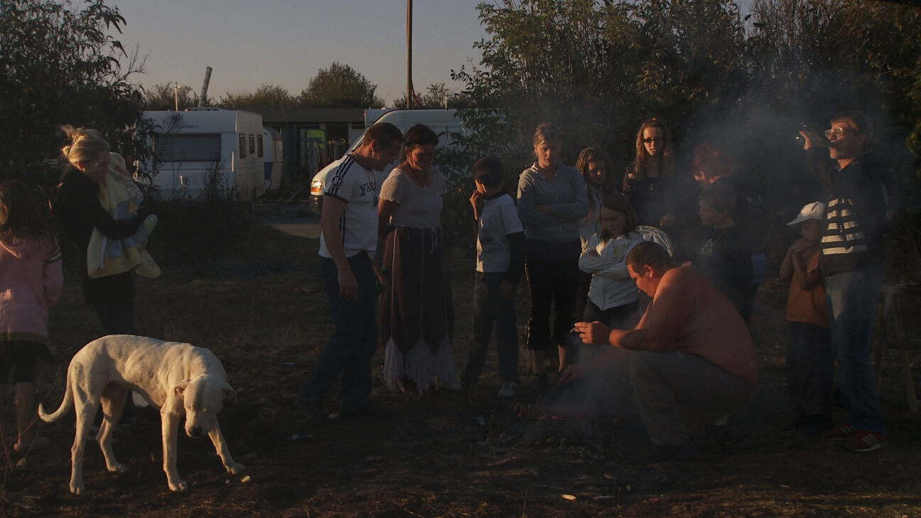 The coarse inhabitants of a trailer park in Beauvais, to the north of Paris, play themselves in this docufiction with unexpectedly surrealistic moments. The everyday life of Fred Dorkel and his friends is made up of driving between the caravans, making bonfires and stealing BMWs. All of this changes drastically when one day Fred finds a white dog in a caravan. From then on, he is no longer the old Fred. He regards the mysterious dog – and the religious revelation he experiences – as an opportunity to change his life. To the total confusion of his friends, he can no longer steal. They don’t accept such ‘strange’ behaviour. Just as in his short No More Bones to Pick, and with stupefying camera work, Hue (who also has gypsy blood), underlines the spiralling violence and the uncertain future of this enlightened man who dares to break with his community. Hue makes use of many unusual camera angles and bright back-lighting to portray Fred’s skewed point of view.