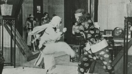 Following the runaway success of The Burning of the Red Lotus Temple in 1928, the Shanghai studios all competed to put out fantasy wuxia films of their own. Red Heroine is one of the few to have survived intact, and is a testament to the huge contributions the genre made to the development of special effects in Chinese cinema (visible in, for example, the Red Heroine’s ability to soar through the air, ride the wind, and appear and disappear in a puff of white smoke). The storyline is strange and erotic, including scenes in which the leader of the rebel army is surrounded by a group of young girls, dressed only in their underwear. Not only is the camerawork and pacing of Red Heroine remarkably fluid, but the two scenes in the first half also lend some poetic nuances to a film that basically catered to popular taste.