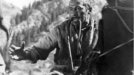 Somewhere in Kyrgyzstan in the 1920s, the pro-Soviet guard Karabalta (‘Black Axe’) detects secret paths in the mountains used by smugglers to transport opium across the Soviet border. Meanwhile, a strange man named ‘Golden Mouth’ offers to accompany a patrol unit led by the Russian commander Kondraty, promising to help find these smugglers and their camp. A mission to find the opium cache is complicated by kidnappers and other disasters. Bolotbek Shamshiev’s thrillerhas a plot that follows the basic formula of the Red Western: a larger-than-life Bolshevik Superman fights a violent native gang operating under the leadership of a cunning and ruthless criminal patriarch. In TheRed Poppies of Issyk-Kul, an ascetic, quiet Superman – as usual – embodies the film’s positive moral core. The film is distinguished by superb camera work, praising the beauty of Kyrgyzstan’s wild nature in lavish widescreen images.