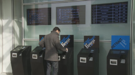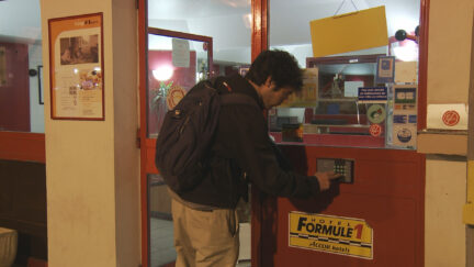 Comical short film by IFFR regular Moullet on the loss of human interaction in transactions and the rise of terminals and machines in the modern era. A drily humourous statement on efficiency and society’s increasingly business-like nature. Screened before A Useful Life.