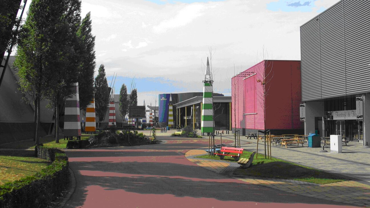 The desire for economic growth, dreams bigger than we can ever hope to achieve and the intoxication of the masses: each of the triptych’s locations has an extreme, monomaniac focus on living, working or recreation. This highlights their absurdity and downsides.