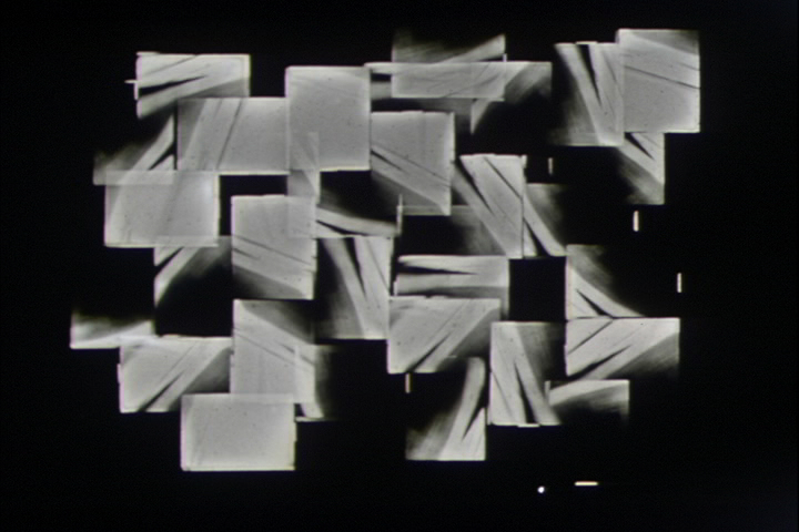 Ville Marie was created by throwing Super-8 cameras off high-rise buildings and then optically printing the footage and blowing it up into abstraction. It was inspired by a recurrent dream during which I experienced an endless free fall from the roof of a skyscraper, facing upwards. (AL)