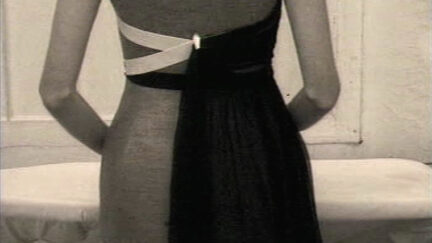 Recording of a fashion show. Outfits are presented in film fragments, accompanied by music, described in projections and shown by models. -