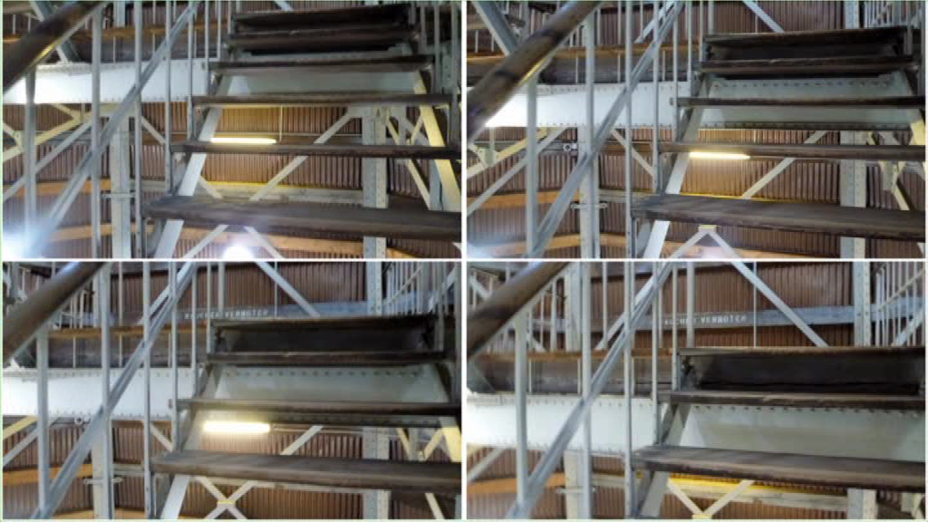The music of Hanne Darboven (1941-2009), which is based on the conversion of calender dates into musical notes, inspired the filmmaker. Because the music was partly recorded at St. Peter’s Church (Hamburg), he made pictures of the church, processed frame by frame in a system of expanding cycles approaching infinity.
