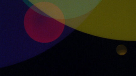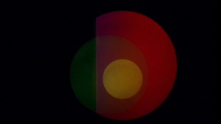 A piece of film of a figure on a wooded path constitutes the start of an exuberant evocation of movement and sound in layered 16mm… -