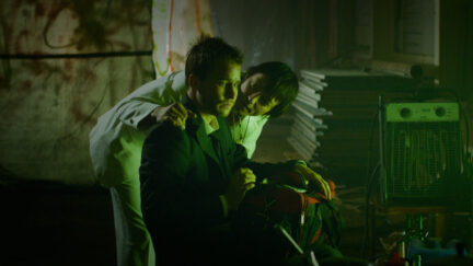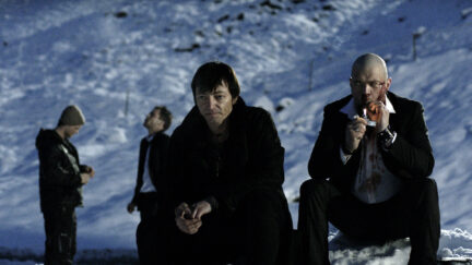 Reykjavik, 1999. A man is interrogated by the police. He was arrested the previous night after a fight. Stebbi can’t remember a thing about it – blind drunk again. In front of the police station smoking a cigarette, Stebbi meets his childhood friend Tóti, a no-nonsense guy with an enormous tattoo on his bald head, a goatee and frightful eyes. ‘If you have any problems, just give me a call,’ Tóti says, handing him a card. Then Stebbi finds himself in a world of tough guys, athletic drug dealers, stunning blondes, mountains of coke, truckloads of ecstasy and other designer drugs, robberies and slaughter. The frames are askew, sometimes in split-screen. The colour pallet of this adrenaline-pumping crime thriller is dominated by the black of the night, the white of the snow and the red of the blood that flows copiously. In a voice-over, Stebbi provides a dry commentary. ‘Inspired by some shit that actually happened’, it says at the start of Black’s Game, the feature debut by Óskar ThórAxelsson. Based on the bestselling Icelandic gangster story Black Curse by Stefán Máni, it was executive produced by Nicolas Winding Refn, director of the Pusher trilogy and the recent hit Drive.