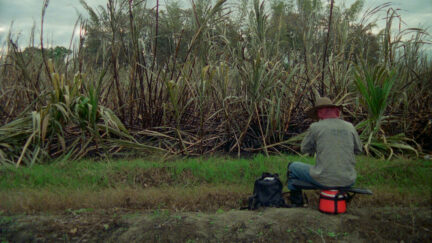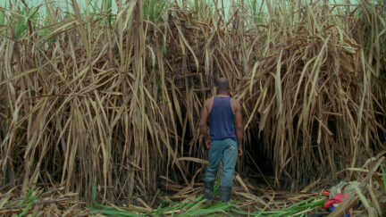 In Corta, Felipe Guerrero records the cultivation of sugar cane in the south-west of Colombia. In all its facets. With a fixed camera. A man walks into the frame, changes his clothes and starts hacking cane, seen from behind. After a few minutes, another one takes over from him. It carries on like that, in a tempo and rhythm – it demands some surrender – that has a very meditative effect. The men sharpen their knives and chop and chop. When they’re finished, enormous trucks drive back and forth and the countryside is set on fire. Guerrero’s minimalist recording of the largely manual process is also an ode to the craft of film: the filmmaker used six 16mm rolls of 11 minutes; the rhythm of the slashing knives determines the rhythm of the editing. Between the different, beautifully photographed scenes are sections of black, occasionally we hear music, often only for a couple of seconds, and that helps shape the mood.