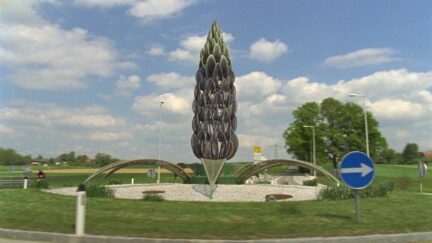 Johann Lurf once again reveals his striking talent and his sense of humour. A to A is an extensive catalogue of mediocre architectural objects on roundabouts, competing for attention in the few seconds as they are passed. A unique artist’s impression, shot from a spluttering Vespa.
