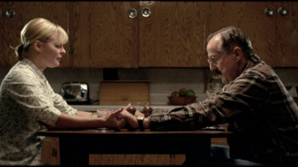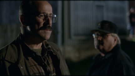 Village life in a Mennonite community in Ontario, Canada, is turned upside down by the murder of an unknown woman. Walter, the local cop, has never had anything to do with a crime like this before. In unravelling the murder, many secrets of the now respectable and converted policeman are revealed. Walter’s tranquil life with his gentle girlfriend has not always been in such calm backwaters, this much becomes apparent. In chapters with biblical titles such as God meets us where we’re at, an intriguing and rather bizarre portrait is sketched of a rural community. Small Town Murder Songs is not an ordinary police thriller or a classic whodunnit, but a character study; a story about striking family bonds and religious village busybodies. With a crazy score by Bruce Peninsula, who uses a rock choir behind key scenes in slow motion. An unusual and rather sombre glimpse of a Canadian subculture and the experience of a mysterious man.