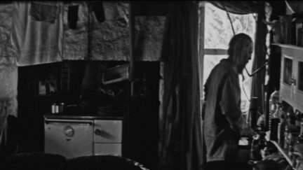 The self-supporting Jake Williams lives in the middle of the forests of Scotland. In 2006, Ben Rivers went to see him for his short film This Is My Land; in Rivers’ first full-length film Two Years at Sea, we see this loner in all seasons, beautifully recorded in black-and-white cinemascope. There are days when Jake saws branches, surrounded by derelict cars and broken equipment. There are days when he builds a raft to float on a loch. At other moments, he focuses on strange projects, such as building a tree hut by hanging his caravan in the treetops. During his daily strolls, he whistles as he walks among the fir trees; Jake doesn’t need words any more. In Rivers’ portraits, intangible phenomena such as shifts in light and darkness are more important than explanations. In 2008, the director won a Tiger Award for Short Film in Rotterdam with Ah, Liberty! (2008). Two Years at Sea won the FIPRESCI Prize in Venice. Rivers’ latest short film, Sack Barrow, can also be seen this year in Rotterdam.