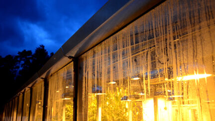 Strict, but exquisite evocation links two artistic disciplines and two visions of light and darkness. Architecture and film meet in the cinema. -