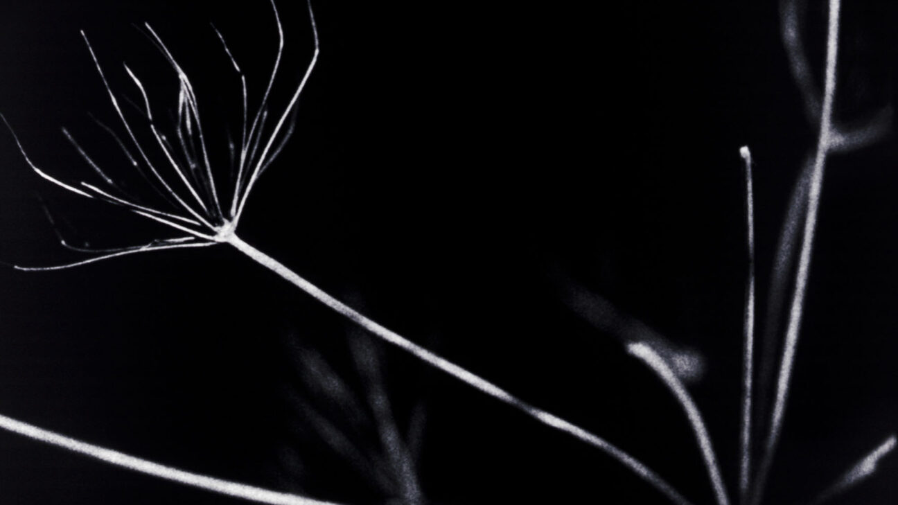 16mm’s black can be as dark as a winter’s night. Dark Garden is akin to a black-and-white herbarium shot in the filmmaker’s garden on one such cold night. Frozen plant skeletons appear on the dark emulsion and reveal their delicacy in a silver glow.