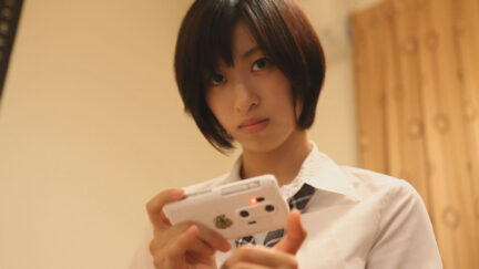 Kuramochi Yuka plays an enquiring girl who is harshly bullied at school. Is that why she cuts open frogs, experiments with her mother’s goldfish and even administers thallium to her mother? ‘You’ve got it wrong!’ she argues. ‘It all has to do with control.’ The girl also protests when the director, who bases his film on a notorious case from 2005, states that he will experiment by moving the story to 2011. ‘There isn’t a story at all!’ GFP Bunny, named after genetically modified fluorescent rabbits, is a kaleidoscopic mix of fiction, documentary, diary notes and internet videos. The filmmaker and his protagonist wonder what biotechnology, cosmetic surgery, surveillance, avatars, extreme piercings and new religion can mean to us. A meeting with a body artist is the prelude to an unexpected and proud finale for the girl. Best film in the Japanese Eyes section of the Tokyo International Film Festival.