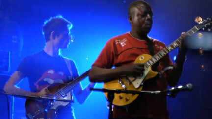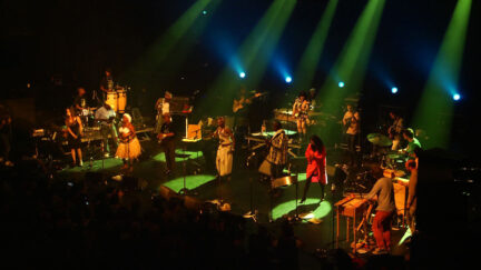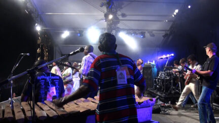 The eclectic record label of Marc Hollander had already brought out a Congotronics series with ‘tradi-modern’ Congolese bands with an urban sound. In 2010, that led to the double album Congotronics vs Rockers, with 26 songs on which Western bands set about making music with these contemporary African sounds. Because the sale of CDs barely earns any money, the label also decided to try organising live concerts. A session band with the same name as the double album was put together. This included 19 musicians who had never played together before: Konono No. 1 & Kasai All Stars, Deerhoof, Wildbirds & Peacedrums, Juana Molina and Skeletons. This fusion of six bands and just as many cultures brought the necessary headaches (visas, transport, rehearsals, etc.), but the documentary focuses exclusively on the musical interaction, which takes us on tour from Brussels via Metz, Paris and London to the Japanese Fuji Rock Festival.