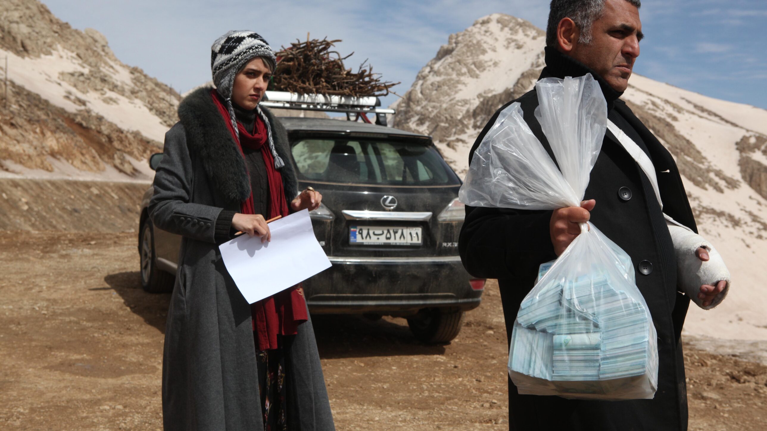 An urban man and woman, a large car with a trunk stuffed with big bags of money: they are an unusual apparition in the grim frontier area, to put it mildly. The man and the woman hand out bags of money to the needy they meet on their way. To get rid of the money, they first have to enter into bizarre negotiations. But while their car ploughs on through the terrible landscape, their ‘charity’ acquires an increasingly painful and sadistic character. Director Mani Haghigi is also an actor. Here, he plays the lead, alongside Taraneh Alidoosti. He is also a scriptwriter, and has written screenplays for Oscar-winner Asgar Farhadi and the Iranian master Dariush Mehrjui, among others. As in so many Iranian films, Haghigi’s work is charged with social criticism. But he does not translate this criticism into realistic drama. Modest Reception is an absurd and bitingly cynical road movie with a touch of Beckett.