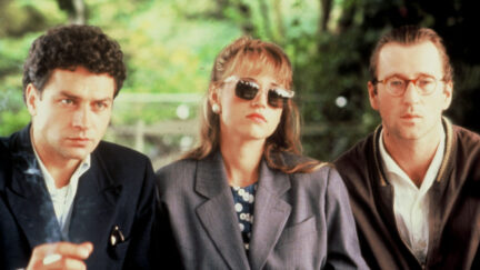 Jojo and Tom are gamblers – adrenaline junkies who make the best of their perennial losing streak. That said, if they won, where would the rush come from? Accompanied by Jojo’s cousin Kathrin, they embark on a trip towards the big time they’ll never see. Thank God there’s a benign narrator up in the clouds who sees to it that the glass always looks half-full. The craziest of Graf’s creations and his sole attempt at comedy that really works, Spieler doesn’t exactly offer nonstop laughs – it’s more like a serene, 111-minute state of suspension and wonder. At its best, Spieler plays like Nouvelle Vague Relaunched – it has the goofiness of Chabrol circa Marie-Chantal contre le Docteur Kha (1965); the perplexing lightness of the Swiss’ Une femme est une femme (1961) and the sardonic aspects of Rohmer around the time of Le signe du lion (1959). Woaaaaaa! Does this explain the histrionics-prone acting, shrill dialogues and generally campy look? You bet! (And yes, Spieler is also corny.)