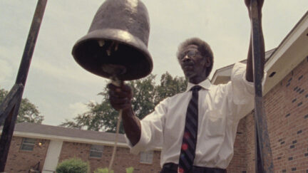 Years ago, Kevin Jerome Everson asked his aunt where their old family photos had gone. Her answer – ‘they were all lost in the flood’ – sparked this trip to meet the inhabitants of Westport, a small town just to the west of Columbus, Mississippi. They reminisce about the great flood of the Tombigbee River in 1973, when some people lost everything. Many heirlooms and photos of the Eversons were swallowed up, and part of the family history disappeared. The independently operating and very productive filmmaker Everson has made many films about the working-class culture of black Americans. Now he presents a serenade to the black inhabitants along the Tombigbee River: his family, a barber, a lock keeper, passers-by. They use the river for many different purposes. In long shots on 16mm stock, Everson shows a water skier, a lock filling up and a baptism in the same river that caused so much misery.