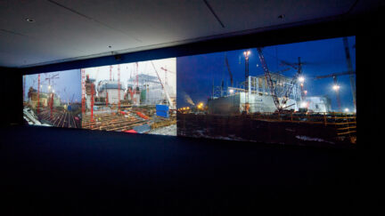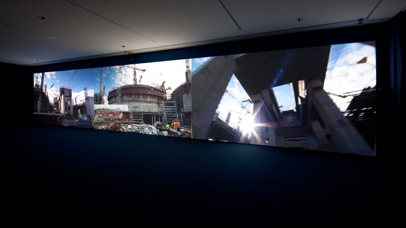 Images of the gigantic structures are spread over three screens, many of them time-lapse shots on 16mm film, interspersed with scenes of everyday life in Eurajoki, whose spirit of optimism regarding ‘the plant’ seems oddly anachronistic from a contemporary perspective. The title stems directly from a slogan that the town itself is proudly promoting.