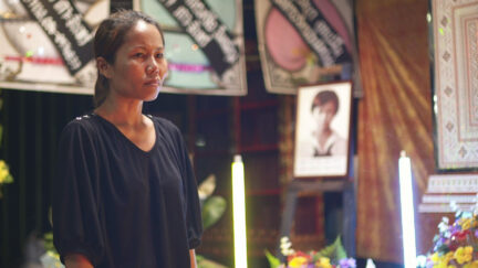 Masterfully filmed, atmospheric moment. The period of mourning comes to an end at a temple-like funeral chapel. The final visitors are not mourners, but want to buy off their guilt. The mother wants to see a real confession. And money. The intense emotionality the death of a child evokes is, as it were, sculpted in space while the tension between the mother and the visitors is captured more subliminally by a roving camera.