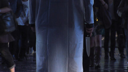 Provost focuses on everyday scenes, from a couple arguing to lost drunks in the hyperkinetic city at night. There is the suggestion of a murder, probably planned by the Yakuza. Provost doesn’t tell the story, but does incorporate the classic crime genre’s tension. Surreptitious music, meaningful glances, cell phones and sirens create powerful suspense that is never resolved.