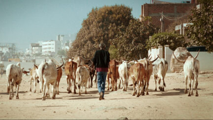 Portrait of Magaye Niang, who played the lead in the African classic Touki Bouki by Djibil Diop Mambéty in 1973. In A Thousand Suns, Niang attends a special screening of this film about a couple who want nothing more than to emigrate from Senegal to France. Ultimately, the man stays behind in his homeland, just as Niang did. Forty years later, he is still a livestock farmer and we see him walk the streets of Dakar, grumpy and drunk. Some boys at the Touki Bouki screening don’t believe him when he says he was the lead. A Thousand Suns was made by Mati Diop, filmmaker Djibil Diop Mambéty’s niece. Just like Touki Bouki, Diop’s film mixes fact and fiction creating a suitable homage to the classic her uncle directed, but above all a sensitive portrait of a man who, in his own words, ‘lost himself’.