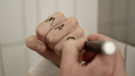 This road movie takes the classic idea of the genre – the search for your own identity – to the absurd. For the collective production Oilfields Mines Hurricanes,eighteen different screenwriters took turns writing a scene, without any hierarchy. The series of events in their fragmentary micro stories full of duckweed, mud and glaciers show no causal relationship. The number and sequence of the scenes are based on John Cage’s 639-year organ work As SLow aS Possible. Main character Salpa travels by car through a world that seems pretty strange – both to us, and to him. He is looking for something he’ll never find. Salpa is accompanied by a salp, a primitive fish he wears on his chin like a translucent beard. Salpa is like a migratory bird, drifting ever further from his destination. The voice-over also calls our attention to a flock of birds, which take decisions collectively, without a leader – the same way this film was made.