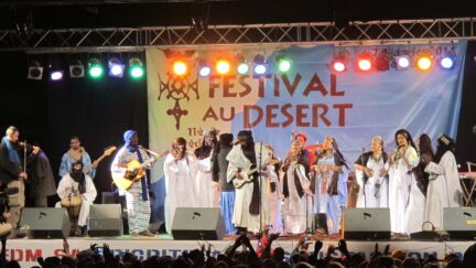 Mali is regularly referred to as the home of pop music. West-African music has clear links with blues, country and folk. Except it has been played in Mali for centuries. The Festival au Désert has been organised since 2000 at the Essakane oasis, two hours from Timbuktu, as a symbol of peace between the Tuaregs (nomads) and the Malinese. It’s a Tuareg custom to meet at agreed spots in the desert to refresh social contacts and make music. Musicians, visitors and organisers from all over arrive by plane, moped, van and camel. En route and in between performances they talk about West Africa and the festival: what it used to be like and what it is like now that Al-Qaeda has banned music. Musicians, visitors and documentary watchers enjoy every gig; a patchwork of cultures. Until Islamic militants and Tuareg rebels ban music and silence the festival.