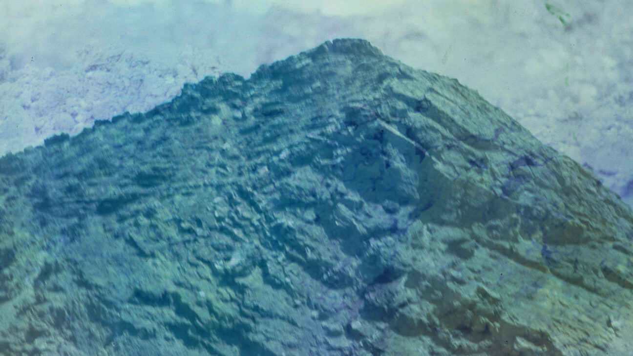 Using household chemicals for photographic processing, bold colours and smears cover the slides of Lanzarote’s barren landscape that appears like an u -