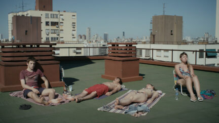 In Rejtman’s absurdist, bone-dry tragicomedy, the characters wander zombie-like through suburbia, unaffected by everything that goes on around them – even an attempted suicide. 17-year-old Mariano comes home, mows the lawn, swims a few lengths in the swimming pool, finds a pistol in the shed and shoots himself – first in the head, then in the belly. Incredibly, he survives the incident. Later, he tells a psychiatrist that he shot himself because ‘it was hot outside’. After Mariano’s impulsive suicide attempt, nothing seems to have changed within his family. Except for one effect that is audible when he plays the flute: during rehearsals, a strange resonance can be heard, caused by the bullet that is still in his belly. The Bresson-esque characters do not suffer, simply because they do not think about what is happening. The absurdities stack up, not least owing to the constant ringing of cell phones at the most inappropriate moments.