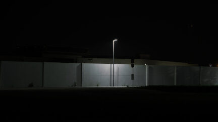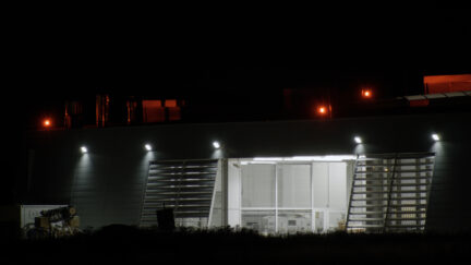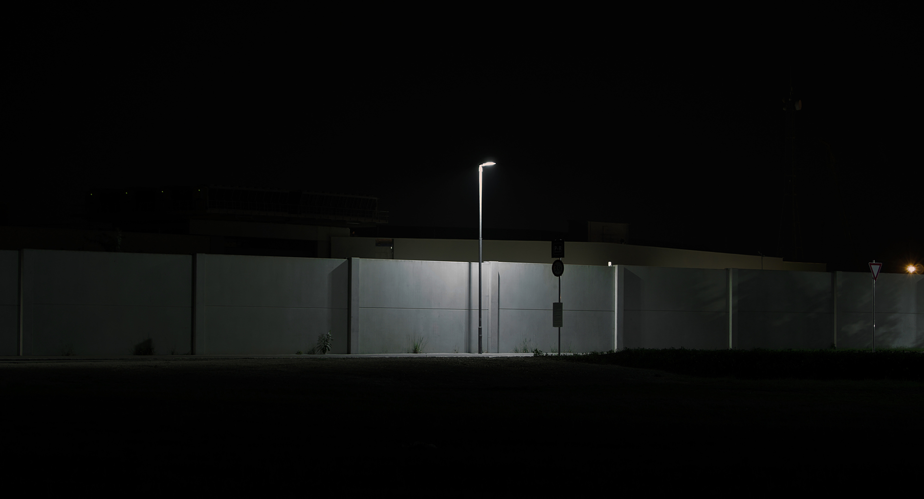Night-time, high-tech surveillance video uses circling camera to depict a run-of-the-mill contemporary business park. All is however not what it seems. The mechanical eye penetrates the initial security level unmasking the camouflage tactics of today’s arms industry using its own tools.