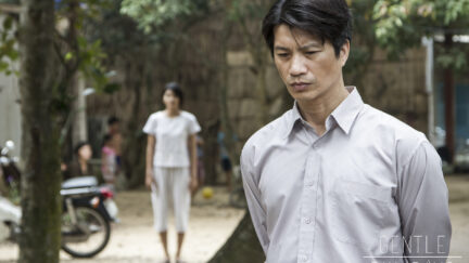 In the opening scene of Gentle,a woman falls to her death; what follows is the attempt of a husband to understand how things could get this far. Jumping backwards and forwards between present, memory and imagination, the husband reconstructs the story of their fateful marriage. He thinks back to the day when a fragile girl stepped into his pawnshop to pawn her humble possessions and reminds himself how he was determined to save the poor orphan child. ‘A Fantastic Story’ is the subtitle of Fyodor Dostoyevksy’s short story A Gentle Creature, on which Gentle is based. The subjective narrative of the pawnbroker occasionally acquires the tension of a psychological thriller in this contemporary adaptation by Le-Van Kiet. Close-ups of the angelic face of Linh contrast sharply with the coldness that surrounds the pawnbroker Thien. His poisonous brew of reality and wishful thinking is commanded and served up precisely and aptly by Le-Van.