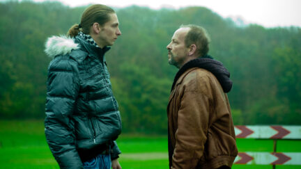 Fifty-something Lei (Bart Slegers) is a petty criminal just about getting by in the Dutch province of Zuid-Limburg. His son Jeffrey is everything to him; all he has. Gluckauf revolves around this suffocating love. However, it is afflicted by a curse that has its roots in the history of the region. Without the point being overly laboured, the closing of the mines in this forgotten part of the Netherlands is felt in every pore of the narrative, like a wound that just won’t heal. This curse (Lei’s ex-wife refers to it as a ‘punishment’) is given beautiful visual form. Many of the settings are sombre and dark, like omens of what is to come. And during a crucial car journey undertaken by father and son – the moment their estrangement begins to sound final (Jeffrey says Lei ‘sounds like a woman’) – all we can see is a glimpse of Lei’s face, and total darkness is just around the corner. Remy van Heugten, who grew up in this area, has made a personal, gripping film that convinces on every level: script, acting, camera, art direction and editing are all rock solid. The abrasively realistic style is unmistakeably reminiscent of the films of the Dardenne brothers, who set most of their films just a stone’s throw away. With Gluckauf, the Netherlands now has its own version, every bit as powerful and painful.