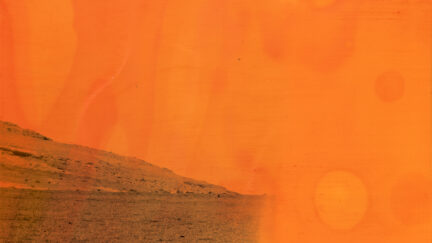 A haze of grey covers the screen while sonar beeps echo through. Magdy’s camera looks through a crystal ball to find a familiar future. -