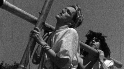 There’s nothing in German film history quite like Jesus – Der Film, starting with the fact this is probably the sole joint endeavor by underground artists from the FRG and the GDR. Michael Bryntrupp, the project’s mastermind, invited directors and collectives he considered like-minded to each adapt a chapter of the Good Book. Everyone could do whatever they wanted (within limits Bryntrupp monitored); nobody knew (in theory if probably not in practice) how the others were approaching their stories; several chapters were directed by Jesus B. himself. Call it an exercise in muted exquisite corps. The result is closer to the Bible’s words and images than the Zealots might have you believe – even if the Maria Magdalena of Doris Kuhn (cf. Morgen) is punished by lingerie-clad ladies, while for Jörg Buttgereit (cf. German Angst) Jesus is a vampire who needs a stake to finally die.