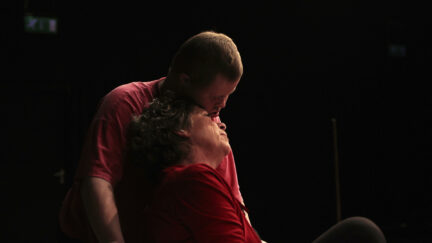 ‘Death is white’ is said somewhere in the film. But before death has acquired this pure, virginal and ‘innocent’ state, a lot of work has to be done. Rob Krikke (Down’s syndrome and actor) has his hands full with that. The theatre show made to mark the death of his sister is a difficult process that is recorded implacably and compassionately by Didderiëns. The approach he uses has a freedom and independence that goes way beyond registration. In this way, the intangible nature of death acquires an oppressive visual translation in the capriciousness of the framing and the blurriness of the images: as if, in the footsteps of Rob, the filmmaker is also trying to get a grip on suffering. And as if that isn’t enough, as Rob is not a ‘professional’ actor, acting and reality also tend to become intertwined. At least, that’s how it looks. Death may then become white, but that doesn’t happen on its own.