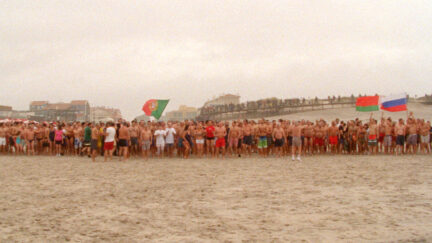The first part of a trilogy in which Miguel Gomes reflects on the miserable situation in Portugal, which suffers heavily under the economic crisis and the demands of the troika – represented here as merchants on camels. The playful form is borrowed from the fairy tale of Scheherazade, but the copiously metaphoric content is based on recent events in Portugal. In this first part, after a documentary opening about the closure of a shipyard, things momentarily threaten to go wrong when the director (Gomes himself) is struck by fear of failure. Scheherazade takes his place and continues the narration. Impotent Portuguese rulers and their foreign masters get permanent erections thanks to an African miracle healer, a crowing rooster is brought to trial, a broken heart leads to arson and a beached whale and the traditional New Year’s Day swim give occasion for tragic personal stories. Gomes’s unabashed shifting between reality and fantasy drew a lot of attention at the Cannes Film Festival.