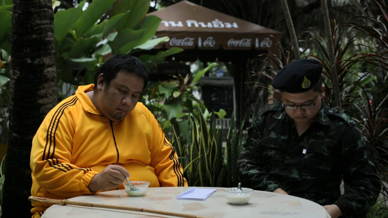 Two fat Thai schoolboys don’t want to serve in the military when they turn 21. They’d prefer to take the territorial defence course instead. But if they want to get in, they will have to pass a physical test. This proves to be quite difficult, so the big boys discuss alternative options over a meal.