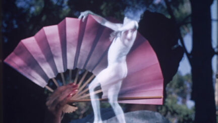 An early precursor to her feminist video works on domestic spaces, artist Idemitsu Mako mocks the objectification of women with a hilarious reversal from conventions of psychedelic art: a kimono-dressed woman performs a traditional dance with a naked dancing man superimposed over her to reveal her playful inner psyche.