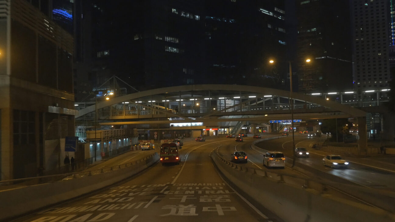Contemporary Hong Kong seen through a windscreen. This dream city exists in perpetual motion, it is tempting and seducing, it imposes unreal dreams on us and then steals them away because they hardly ever come true. Filmmaker Yang Zhengfan spent five years there and always felt like an outsider, as if there was unbreakable glass between him and the city. Glass that at once protects and detaches.